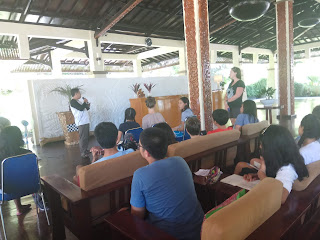 Selama kegiatan berlangsung sharing pembelajaran diberikan oleh Balai Taman Nasional Bunaken meliputi melihat video pengelolaan terumbu karang, video tersebut dibuat oleh profesional dan video yang dibuat oleh kelompok masyarakat binaan Taman Nasional Bunaken, selanjutnya diberikan penyampaian presentasi untuk mengenal ekosistem terumbu karang, mangrove, dan lamun serta biota laut lainnya di Taman Nasional Bunaken.